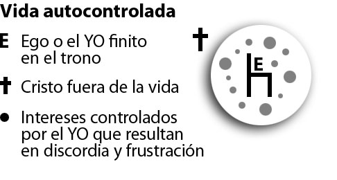 Dios es santo (libre de toda maldad y perfecto en comportamiento y actitud) y el hombre es pecador (no vive de acuerdo al propósito para el cual fue creado). Un gran abismo los separa. La imagen muestra como el hombre está tratando continuamente de alcanzar a Dios a través de sus propios esfuerzos, tales como vivir una buena vida, la filosofía o la religión, pero siempre falla en su intento.